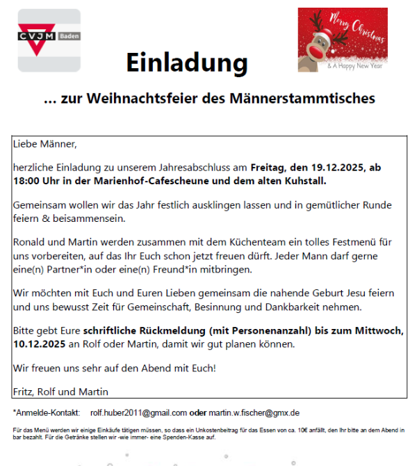 - Männerstammtisch am 19.12., 19:00