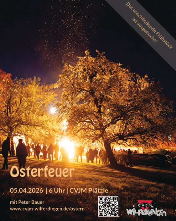 Herzliche Einladung zum großen Osterfeuer am Ostersonntag um 6 Uhr auf das CVJM Plätzle.